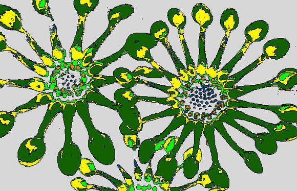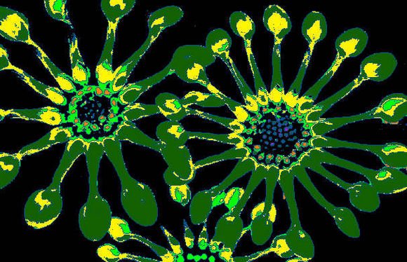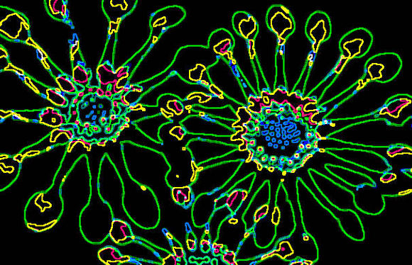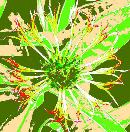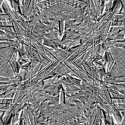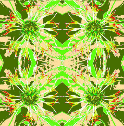 The tools that I used were, posterise, contrast, hue, emboss. invert, glowing edges and tiling. Play with the effects, adding one effect on top of another. You will need to save your work often because it may be hard to go back later to an image that you really liked. You can usually use the undo button to go back but some applications only allow you to undo a small number of times. Remember to save your work using a different name or you will overwrite any designs saved earlier.