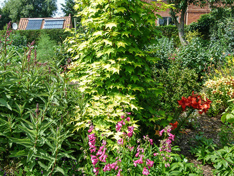 At about an acre, I can only envy the size of Roger’s garden. His style of gardening is also very much to my own taste where large islands beds of perennials jostle for space with a series of garden ponds.