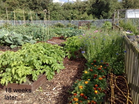 (Click arrows for photo 7-11) June saw the plot really starting to look like a proper allotment with everything flourishing. Unfortunately this included the weeds.
