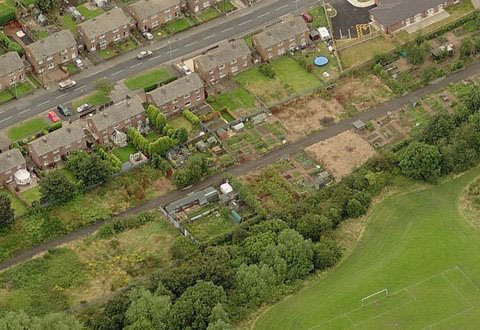 Photos 17 and 18 show birdseye views of the Cyprus Road allotments' site in Normanton.