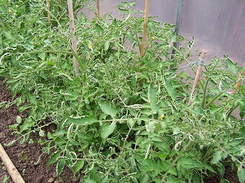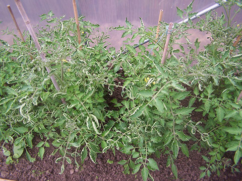 The first signs were at the time not considered to be anything out of the ordinary. One of our plot holders commented that his tomatoes were curling as they grew and looked funny. Being fairly new to growing tomatoes he asked advice and was told that tomatoes often do that sort of thing! Still no-one realised what was in store.