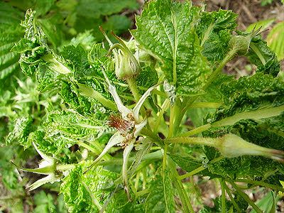 "I imagine, as with other types of weedkiller damage, that the more established fruit bushes and trees will survive. Once the contaminated manure is in the soil, the breakdown of aminopyralid is much faster so affected trees and shrubs are likely to show signs of growing out of the problem by the following season. Raspberries do tend to be more sensitive to hormonal weedkillers than other fruit so they may show the worst symptoms. Perennial plants may too look badly hit but I think it is worth leaving them in the ground until the following year to see if they show signs of recovery".