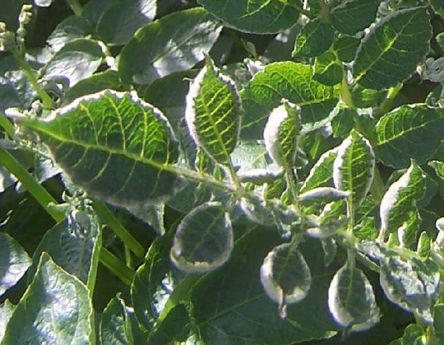 The potato distortion is classic hormone type weedkiller damage. In the last two years a new herbicide has been introduced which binds to the lignin (update June 2009 - I am now told the herbicide binds to plant cellulose) in straw and grass, so that when the muck rots it is released and harms crops. We think this new herbicide is implicated in many of the cases that we have encountered– read more here: (website no longer available)