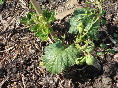 John from Sandwell where allotment sites have been badly affected by the contamination of manure since 2008 has been in touch again to say that an allotment site in his area has had a delivery of manure suspected to be contaminated which has affected potatoes and beans. What is even more worrying is that John reports that evidence is, that it was fresh when delivered in January. We were expecting that any new problems would be caused by using manure that had been standing in heaps since before the weedkiller was temporarily withdrawn but this seems to imply that the manure has been contaminated fairly recently. John describes the effects on crops to be light and patchy leading the to possibility that this was a mixed batch of manure with some part of the heap being contaminated and other parts not.