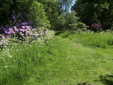 As well as browsing the walled garden in which fruit, vegetables, herbs and flowering plants are grown alongside one another, we enjoyed a wander around other garden areas both formal. Also on display are various examples of old garden machinery in a stable block and other old garden equipment in the potting shed.