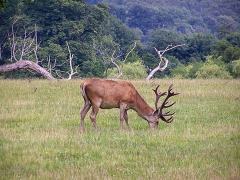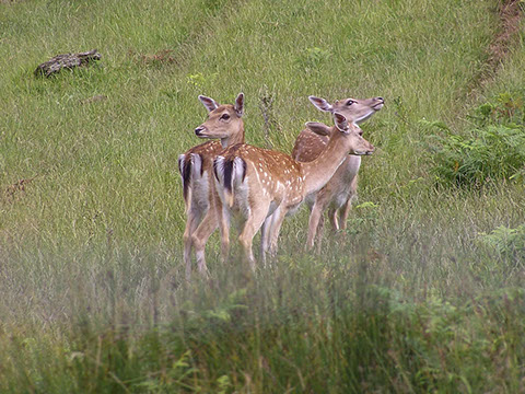 For the visiting gardener there are both flower and vegetable gardens. There is also an auricula theatre although when we visited the auriculas had been ousted by geraniums (pelagoniums). In Calke Park you can enjoy a walk through ancient woodland and pastureland. Two of the oak trees are reputed to be over 1,000 years old - just think they would date back to before William the Conqueror invaded Britain. Walks take you alongside large ponds and weirs. You can also watch the red and fallow deer browsing in a large enclosure.