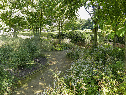 The walled garden is set within the walls of the original kitchen garden. It had been derelict for nearly fifty years when the Dutch garden designer, Piet Oudolf, was commissioned to design for the walled garden.